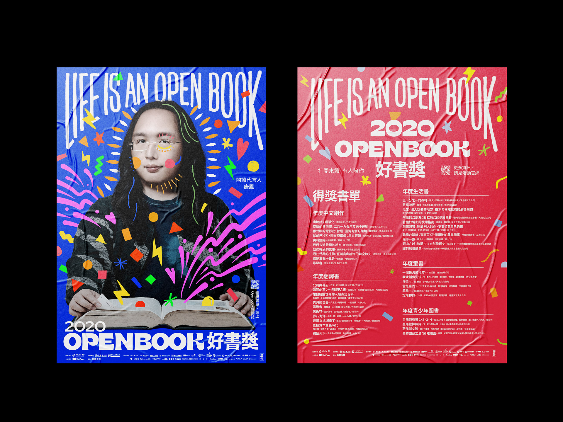 重新設計「OPENBOOK 好書獎」活動標準字,使其更具備品牌價值與辨識強度。視覺著眼 Life is an “OPEN” Book 中的 “open” 動詞,表現該動作後所開啟的多彩繽紛世界,呼應閱讀的價值;同時考量代言人的視覺相容應用,與典禮使用需求的多重系統一致性,完整活動的識別需求。
